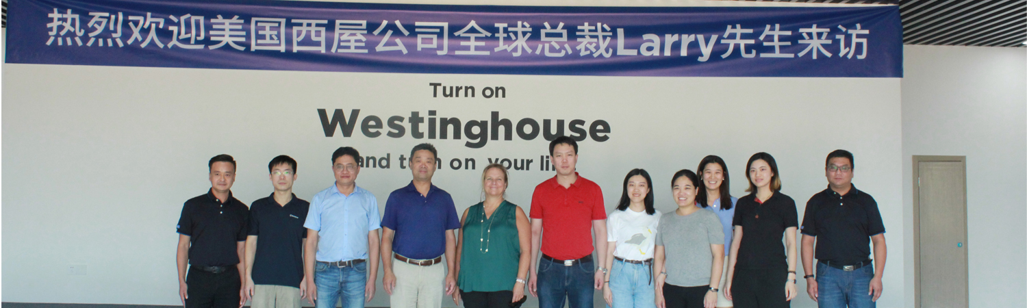 Mr. Li Guowei, the chairman of Westinghouse (Hangzhou) Industrial Park, welcomed Mr. Larry and his team with his team, and led a team to visit Westinghouse (Hangzhou) Industrial Park's product display center, production workshop, laboratory, and the living environment of the park. At the product exhibition center, Li Dong explained the development history of the center, the honor of the park, the product system, and the performance of the representative products. The delegation was satisfied with the current layout of the product center, and gave high praise to the future development of the park. Expectation.